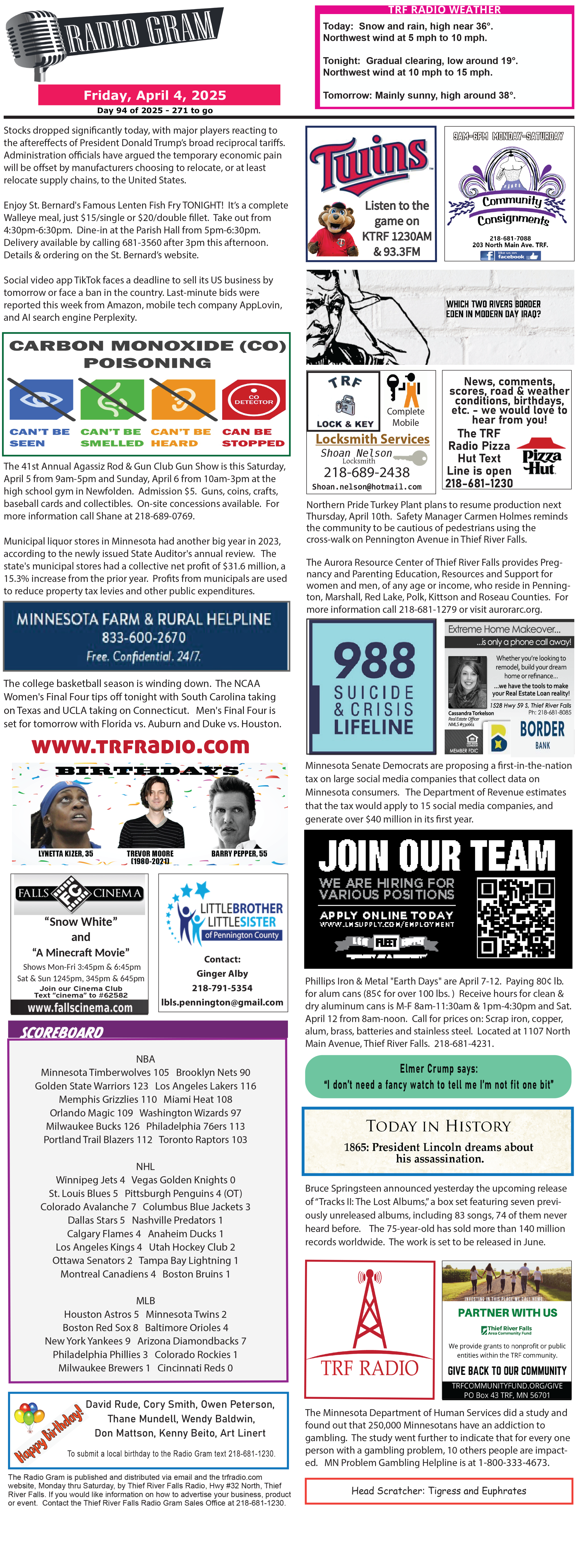 April 4 Radiogram