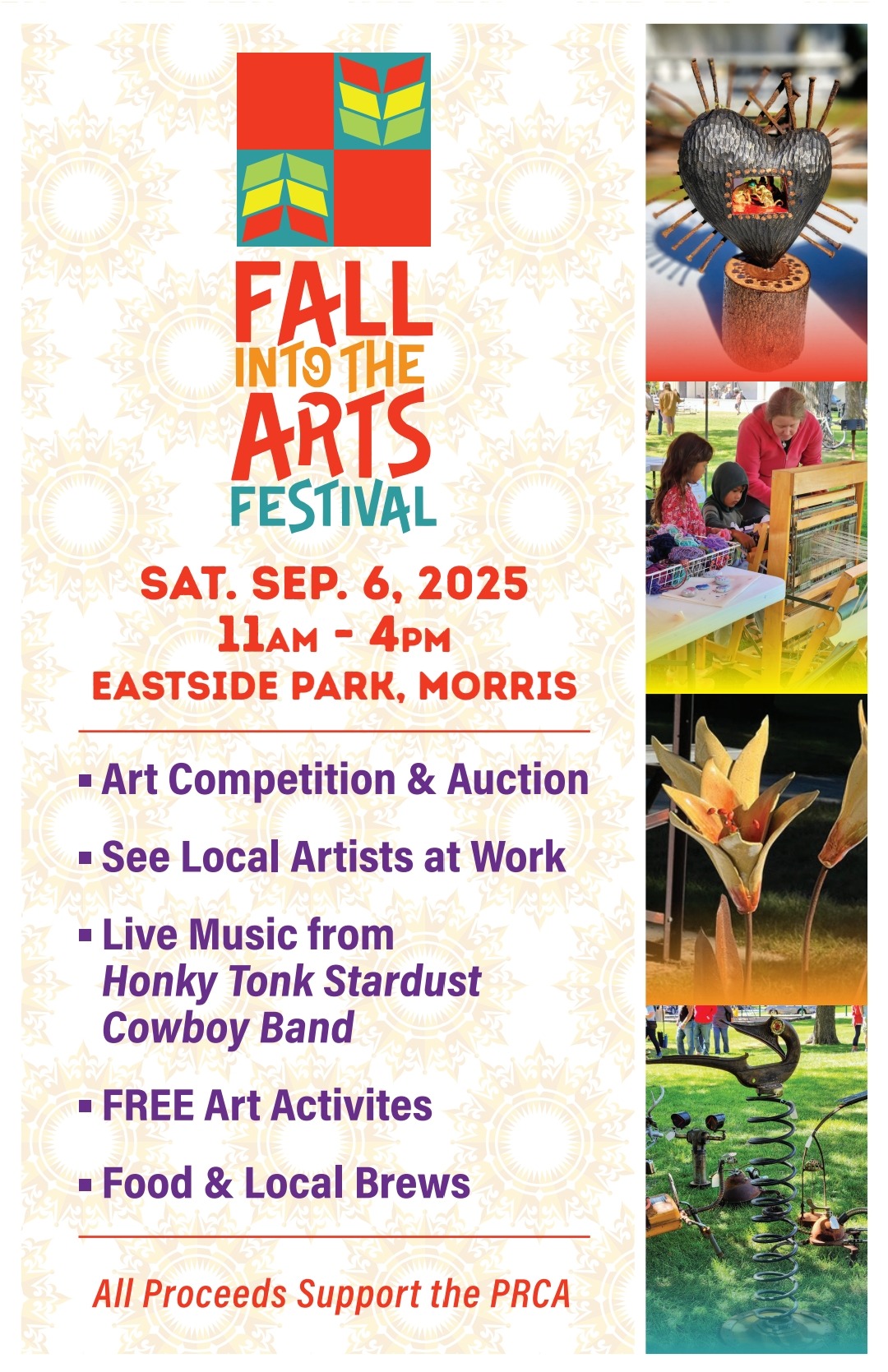 Call for artists!! Enter the People’s Choice Art Competition for a chance to win cash prizes. The PRCA is looking for people to compete in the Fall Into the Arts Festival art competition on Saturday, Sept. 6, 2025 at East Side Park in Morris, MN. For more information, please visit the PRCA website: http://prairierenaissance.org/call-for-artists/