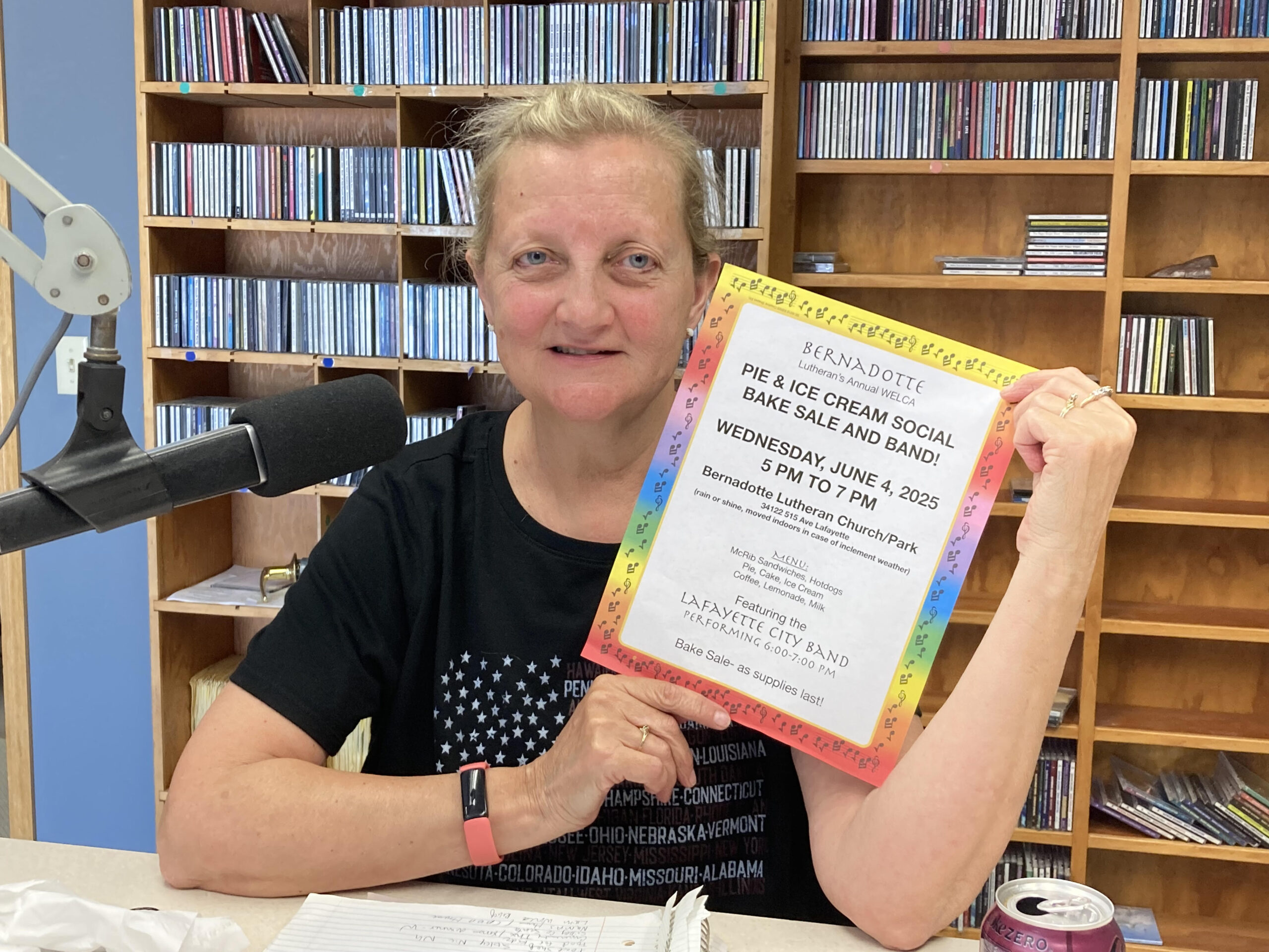 Deb is inviting everyone to the Bernadotte Pie and Ice Cream Social, Wednesday at Bernadotte Lutheran Church.