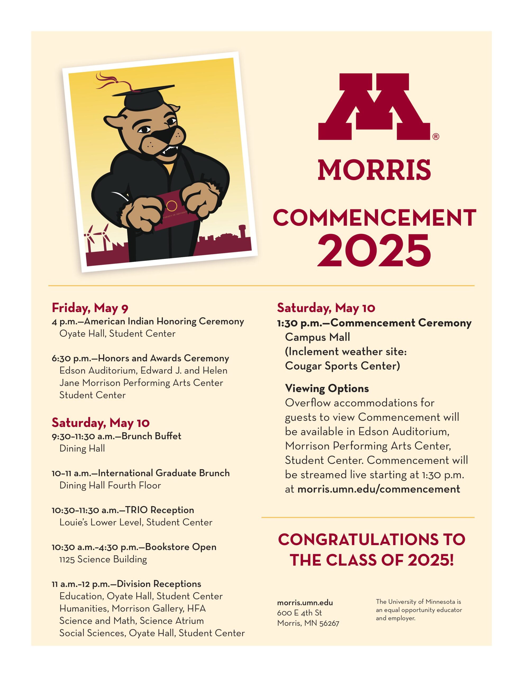 To request accommodations related to disability, contact the Disability Resource Center at 320-589-6178 or by email at ummssc@morris.umn.edu.