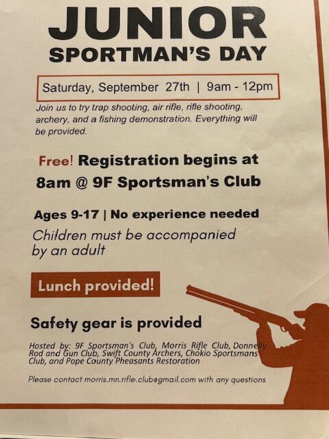 9F – Jr. Sportsman’s Day Saturday, September 27th