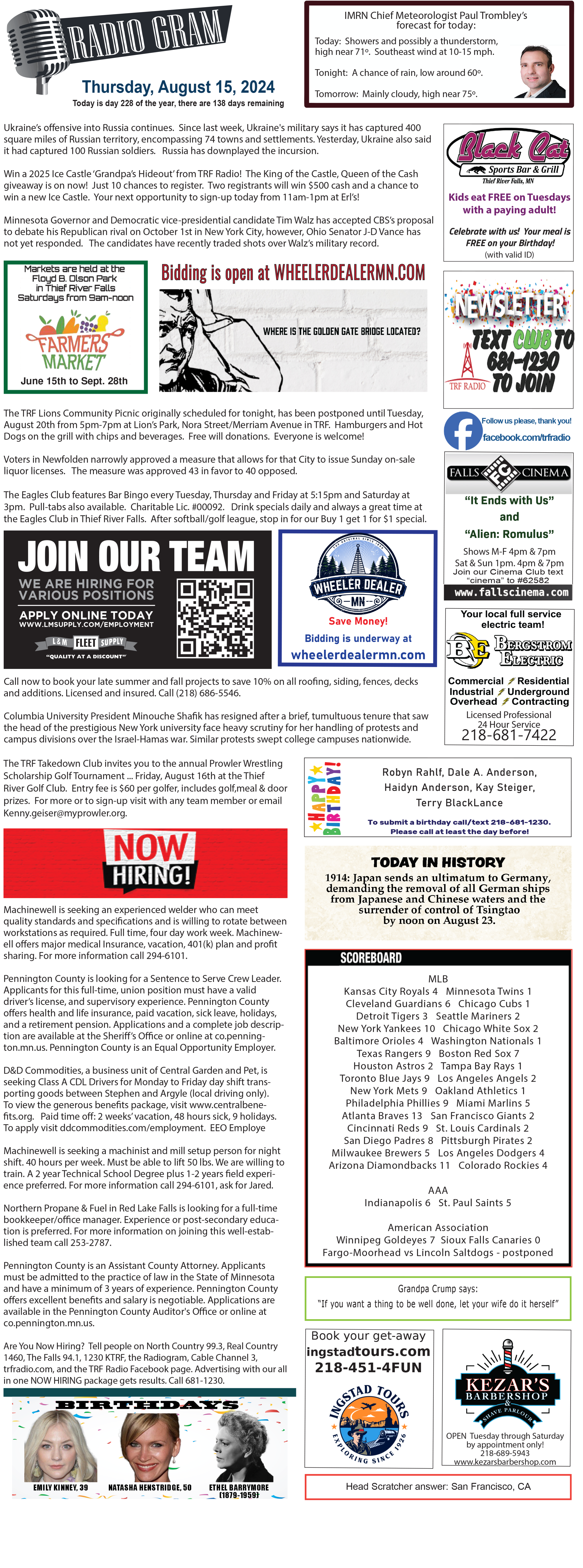 August 15 Radiogram