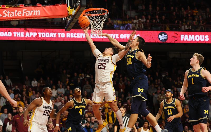 (Minneapolis, MN) — Dawson Garcia hit a mid court three pointer at the buzzer as the Gophers stunned 20th ranked Michigan 84-81. Michigan’s Danny Wolf made a lay up to tie the game at 81-81 with :07 seconds left in overtime but that was followed by Garcia’s shot, from the logo at center court, who […]