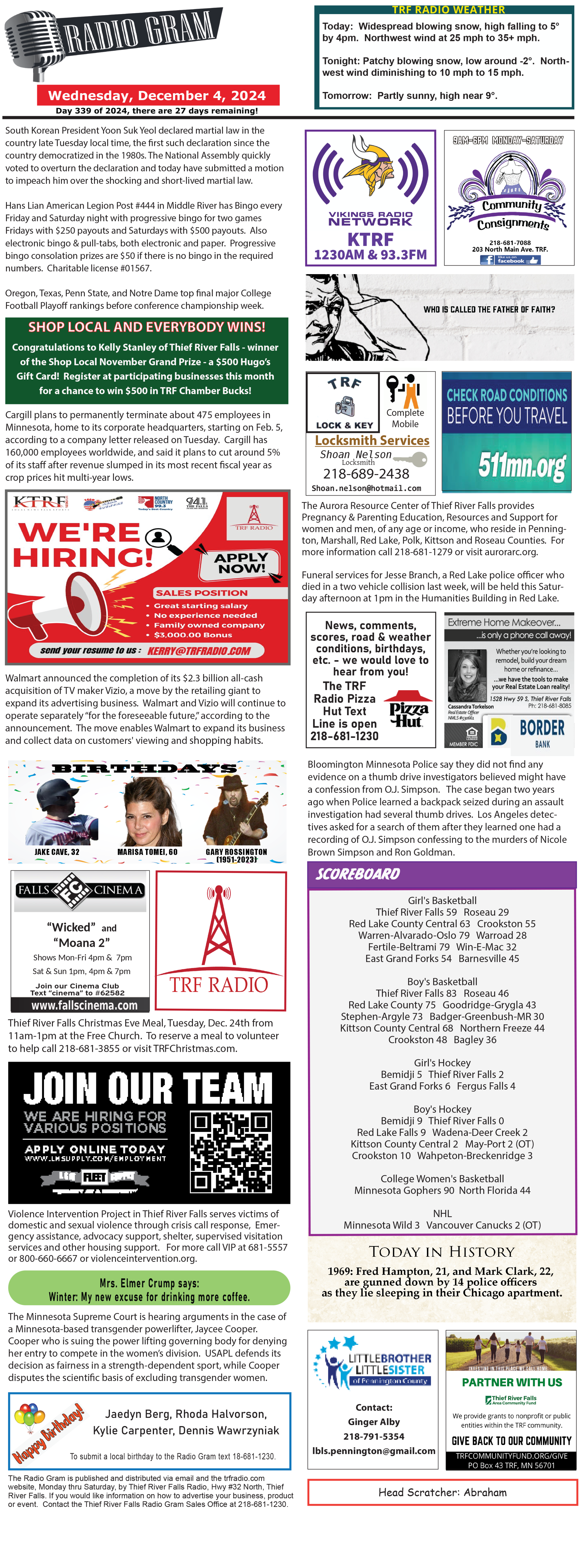 December 4 Radiogram