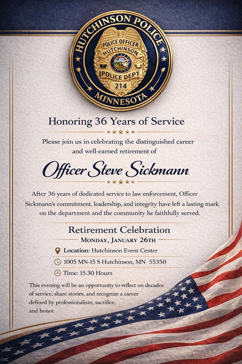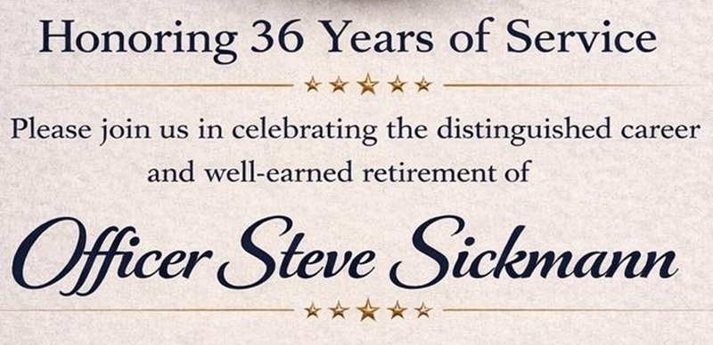 Officer Steve Sickmann is officially retiring after 36-years of service and a retirement celebration is being held this afternoon.