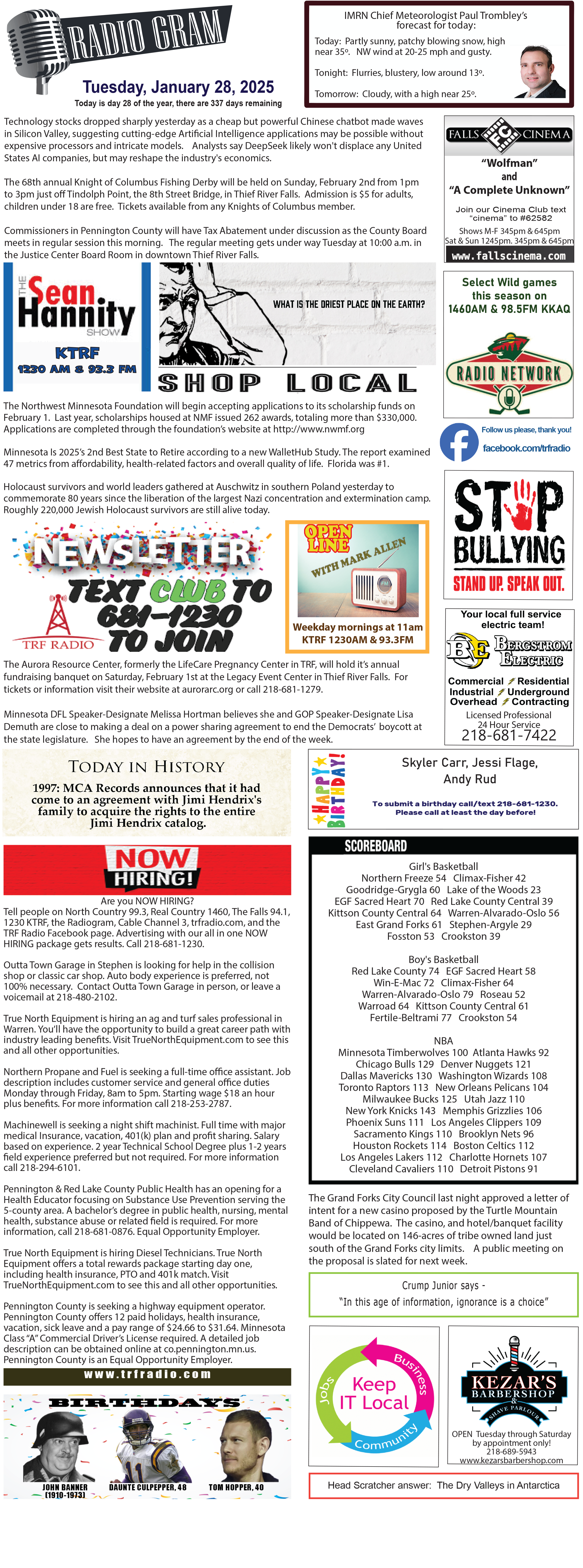 January 28 Radiogram