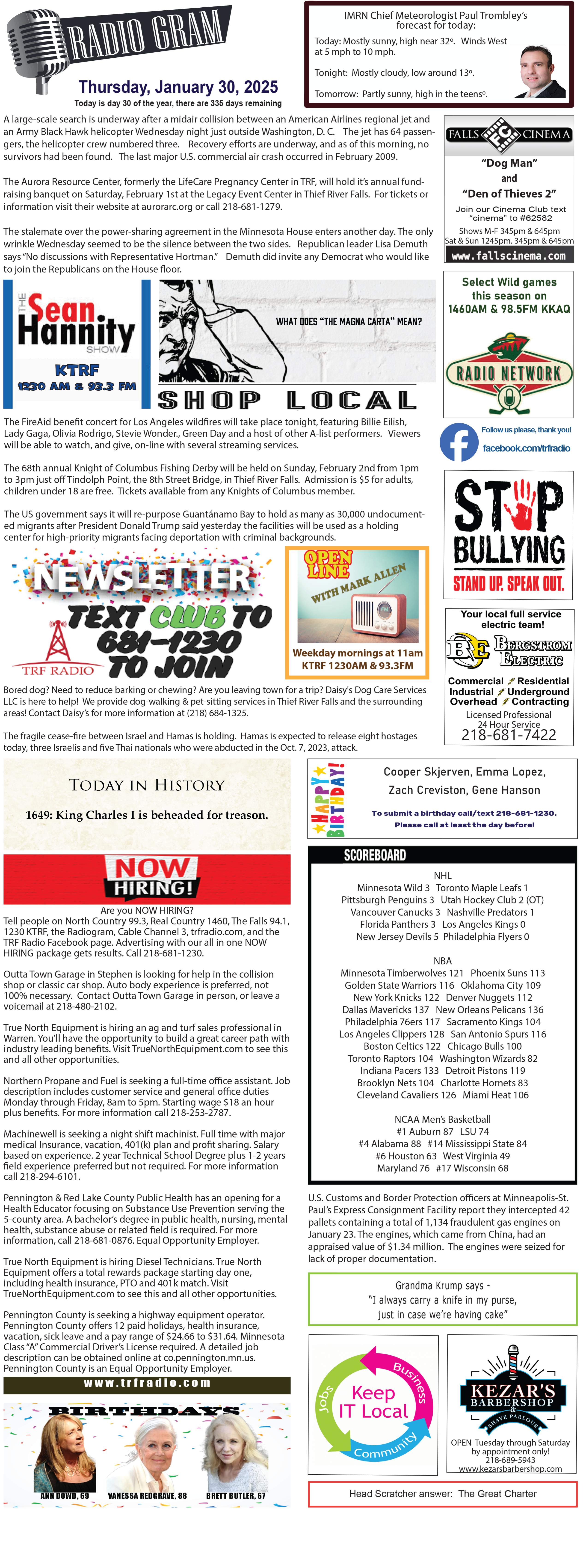 January 30 Radiogram