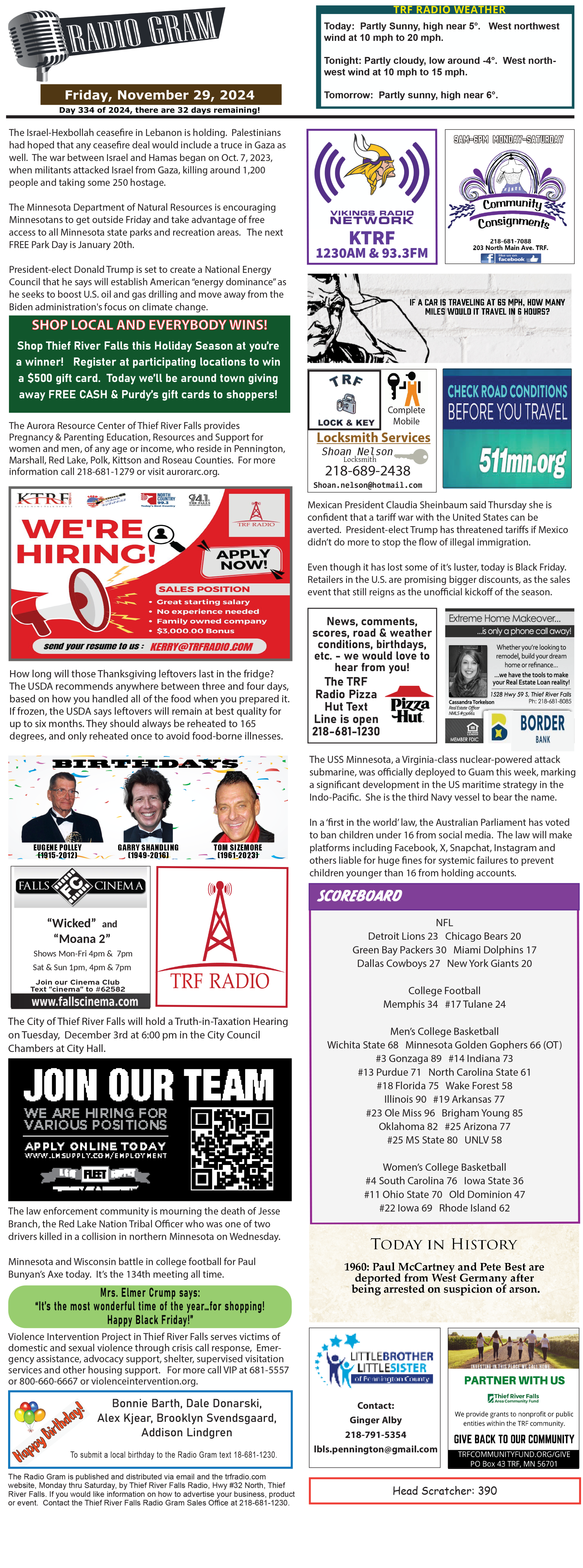 November 29 Radiogram